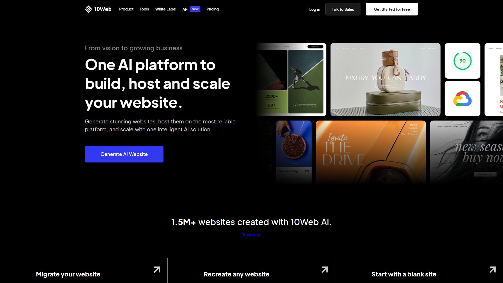 10Web allows any website to be migrated in one click, saving time and avoiding technical issues. After migration, an optimized copy of your website will be hosted on 10Web, with reported improvements such as a 90+ PageSpeed Score.