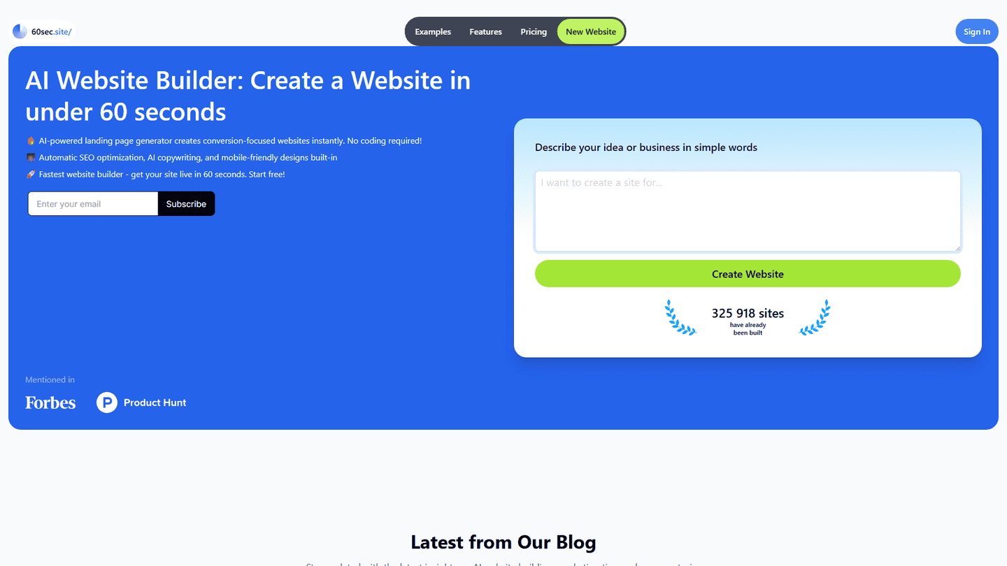 The 60sec.site tool can generate a landing page in just 60 seconds, thus providing a time-efficient solution for users who need to quickly establish an online presence for their product or business.