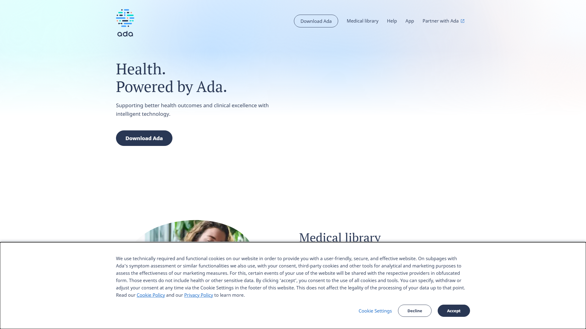 Ada associates itself with the provision of reliable, clinically driven AI. It has partnerships with major healthcare and life sciences organizations, working together to improve health outcomes and promote clinical excellence.