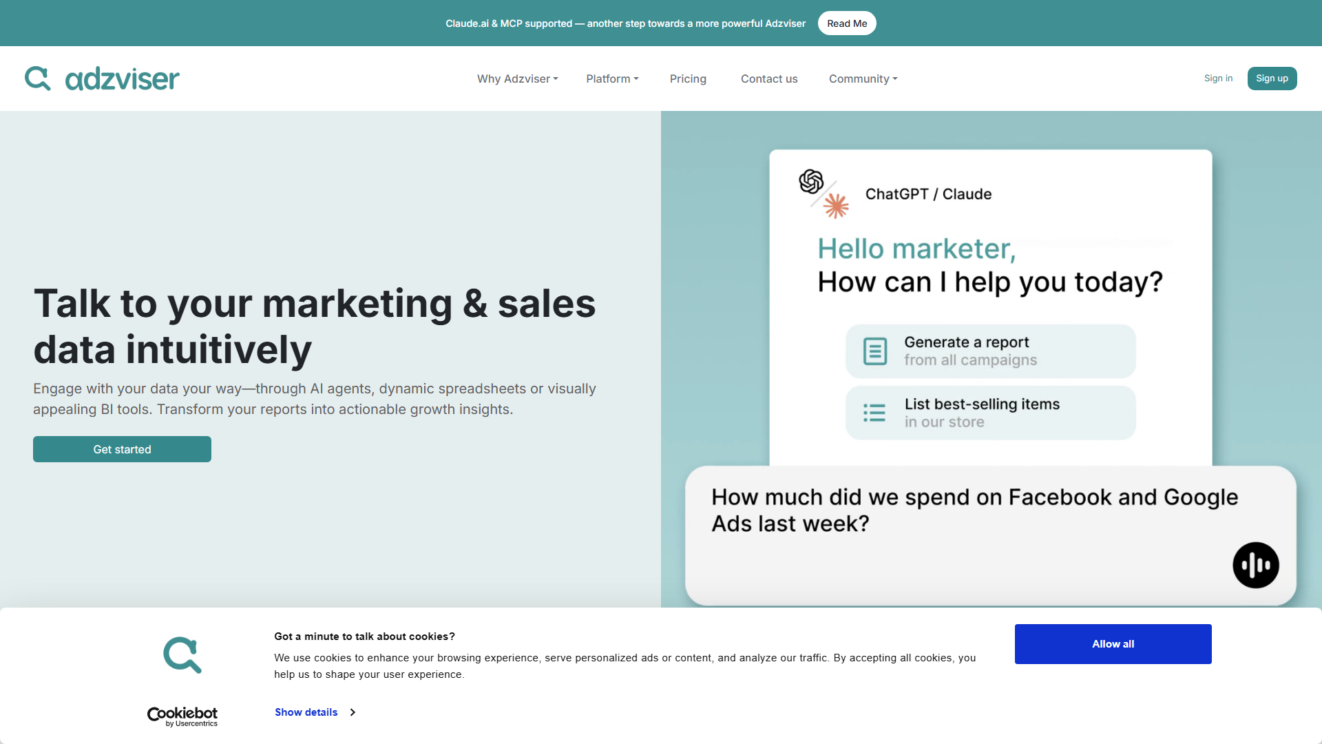 Adzviser is a chatbot tool designed to help marketers make data-driven decisions more effectively and efficiently. It allows marketers to gain insights into their marketing performance without requiring engineering skills. Adzviser aims to simplify the process of data extraction and analysis by providing an intelligent and user-friendly platform.The tool offers a natural language understanding feature that enables users to fetch data with minimal scrolling, clicking, and mousing. It aims to bridge the knowledge gap between experts and novices in media planning, data analytics, and reporting through the use of generative AI.Adzviser boasts a direct integration with ChatGPT, making it easy for users to generate reports, validate hypotheses, and analyze data. It eliminates the need for excessive clicking and mousing on Google Sheets extensions.In terms of pricing, Adzviser offers a simple and connection-based pricing model, allowing users to pay only for what they use. The tool emphasizes affordability and simplicity to minimize wasted resources.Data security is a priority for Adzviser. It ensures the protection of sensitive information through state-of-the-art encryption and storage solutions. Data is stored in a highly secure and compliant environment, and access controls and security audits are regularly performed.While there are considerations regarding data trust with ChatGPT, Adzviser takes measures to limit access to personal and sensitive data. However, users should carefully evaluate the risks and rewards of using any tool or platform handling data.In summary, Adzviser is a user-friendly and cost-effective chatbot tool that enables marketers to gain insights from their cross-platform data without the need for engineering skills. It offers a simplified data extraction and analysis process and prioritizes data security.