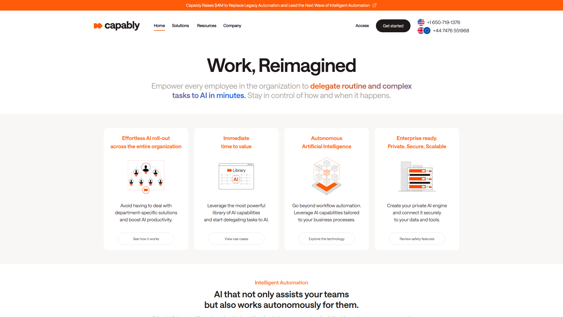 Capably is an Enterprise AI Management Platform designed with the aim to boost productivity by integrating artificial intelligence into company operations. This platform allows the creation, onboarding, training and deployment of AI employees across organizations. Capably simplifies the process of AI adoption by offering a plethora of tools that provide visibility, and control over the use of AI within an organization, without needing specialized knowledge in the area. Capably's platform features include a simplified process of integrating AI into existing workflows, seamless connection with company databases, documents, and information resources, advanced user management controls, permissions, and dedicated user support. Using Capably, businesses can integrate AI employees into their teams following a straightforward onboarding process. It is designed to review the performance of these AI employees, develop their capabilities, and train them according to company requirements. Moreover, Capably also provides robust control over the behavior and use of AI employees within an organization, ensuring safety and compliance. Ease of adoption and integration, coupled with a user-friendly interface, makes the platform particularly suitable for users with no AI expertise.