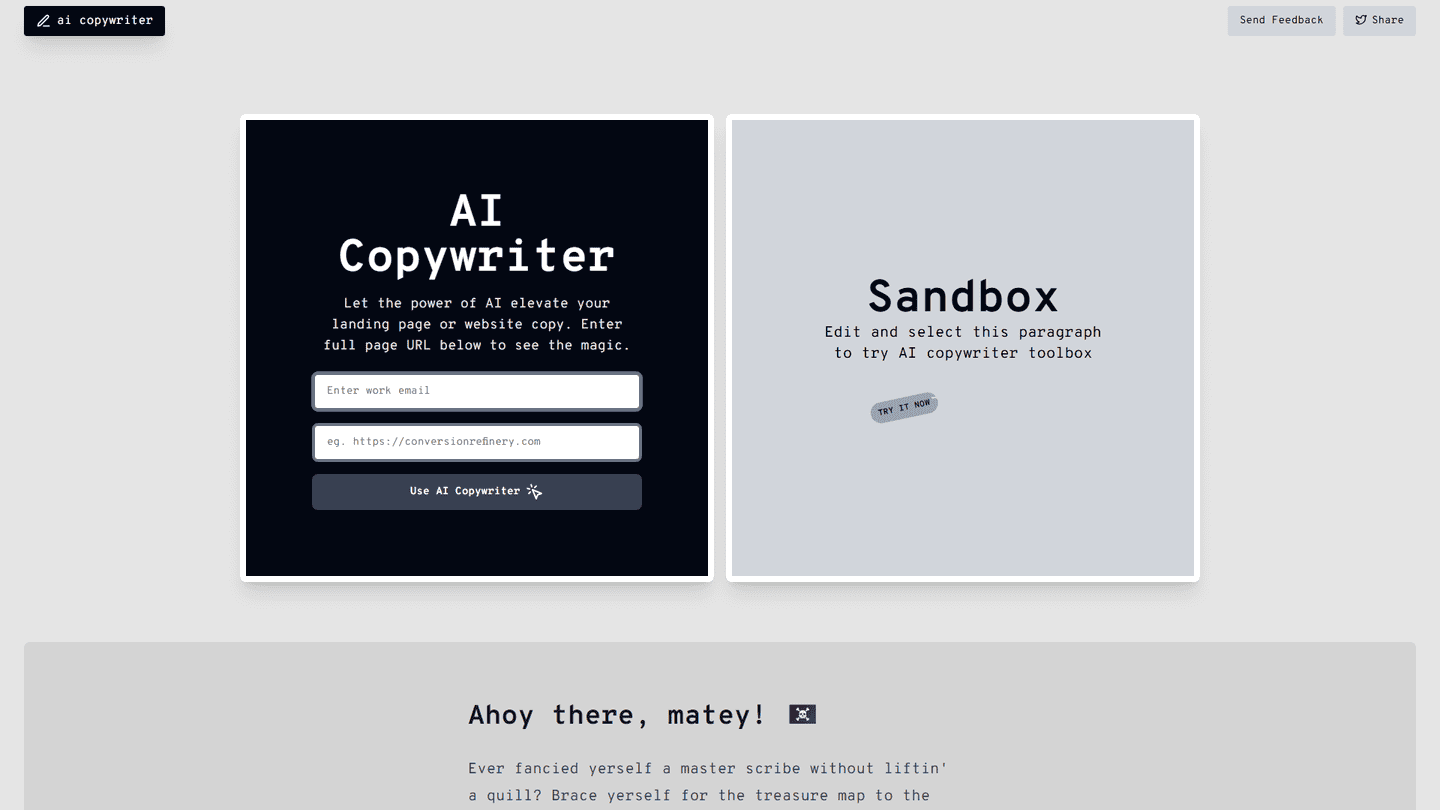 You can access AI Copywriter by entering your page URL on their website. Once the page is loaded, you can select the text you wish to improve and activate the AI-powered copywriting toolbox.