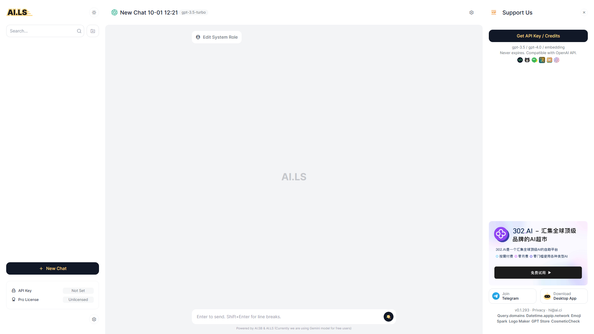 AI.LS is an alternative to ChatGPT by offering an elegant UI for the same functionality with multiple engine choices including gpt-3.5, gpt-4, and Claude. It also presents a novel approach in that it does not require a mandatory log-in and provides free usage quotas.