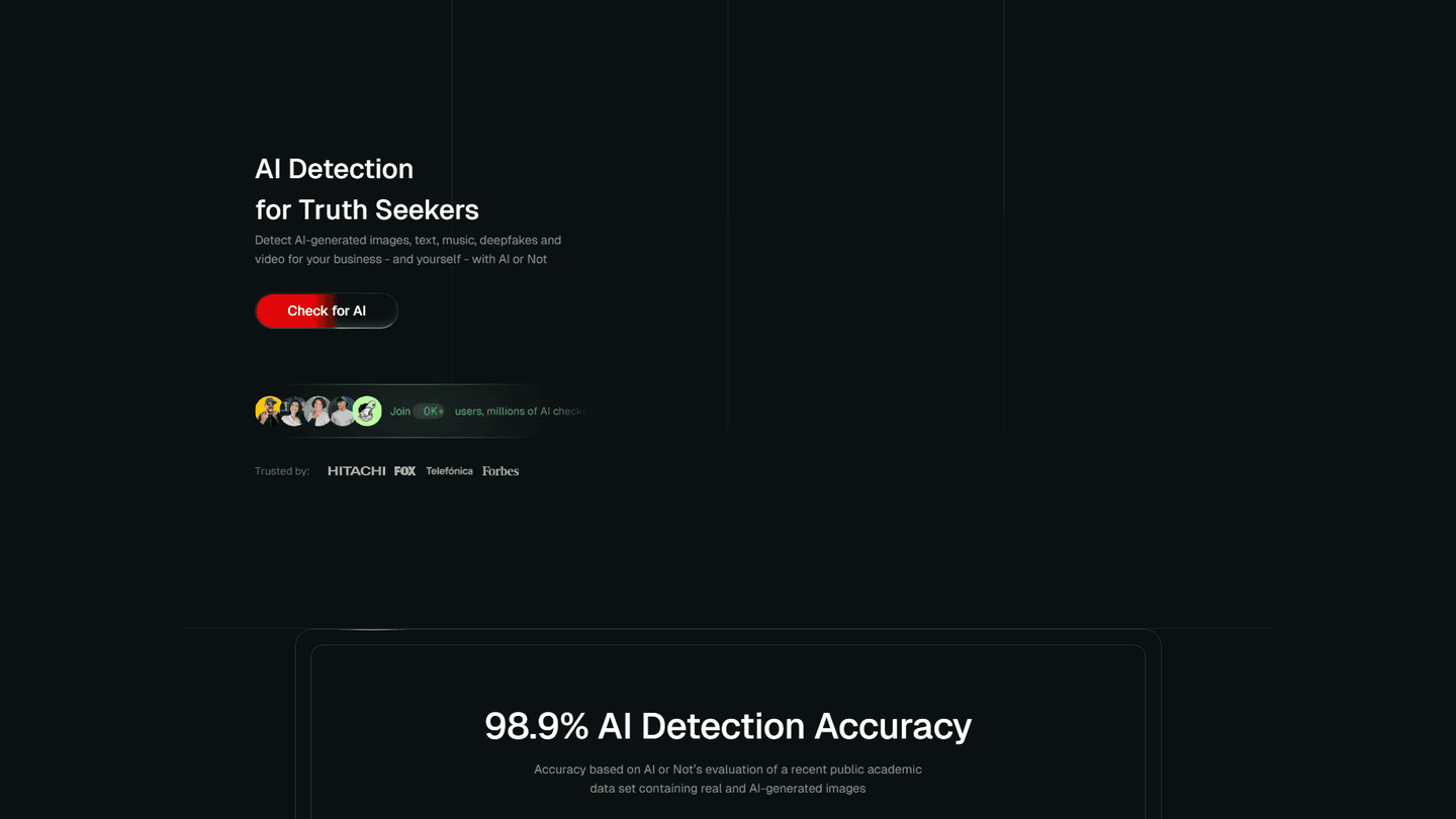 AI or Not offers detailed detection reports to ensure accuracy and transparency in the identification of deepfakes and other AI-generated content.
