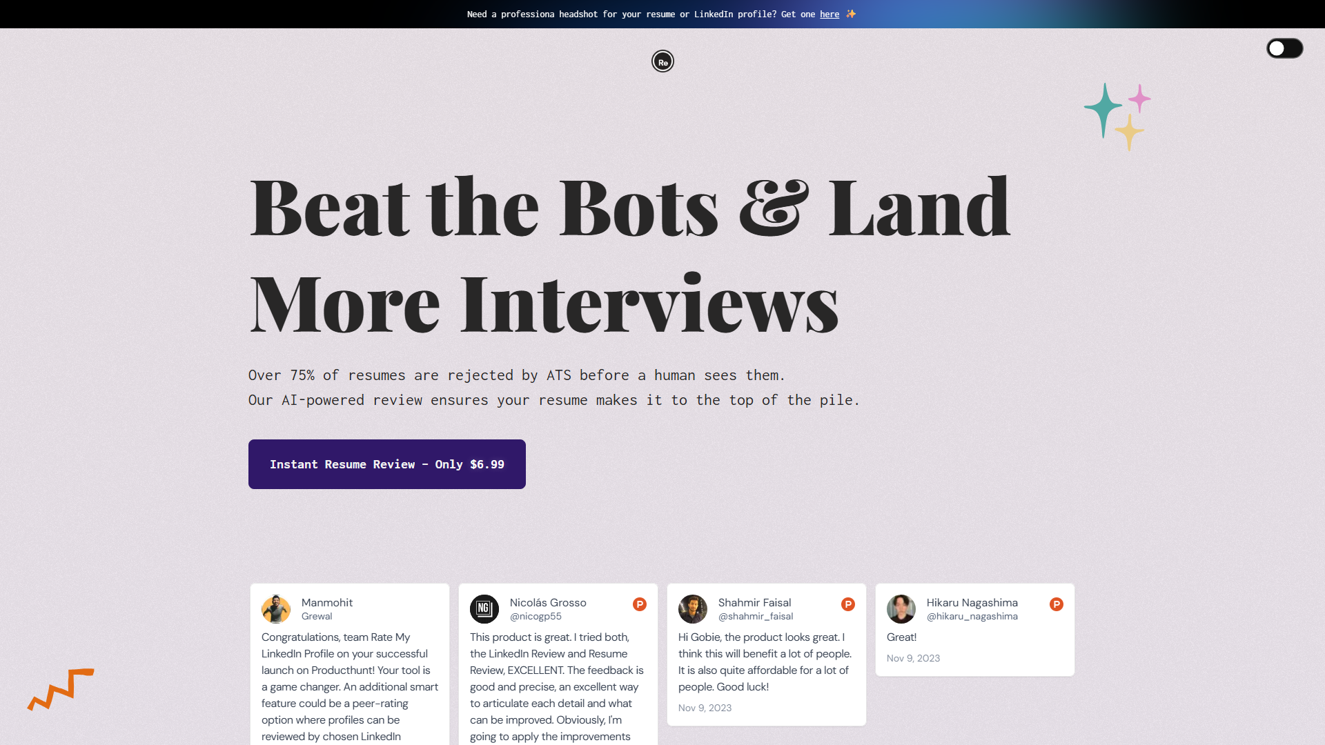 The AI Powered Resume Checker requires your email to send you the review and also to curtail misuse of the service.