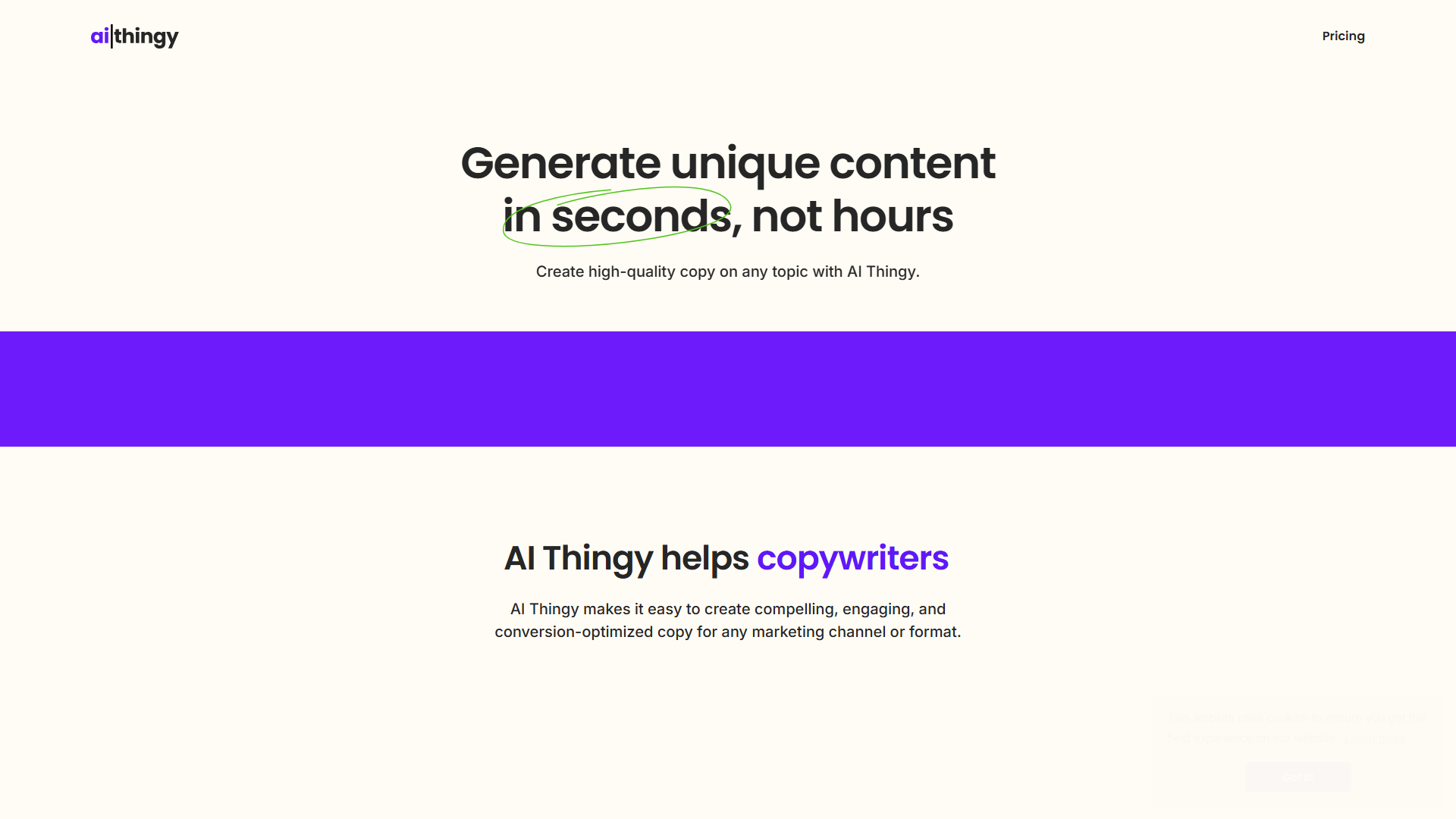 Users provide some context to AI Thingy in the form of a few sentences. After analyzing this input, the AI creates original copy along with a set of the most relevant keywords.