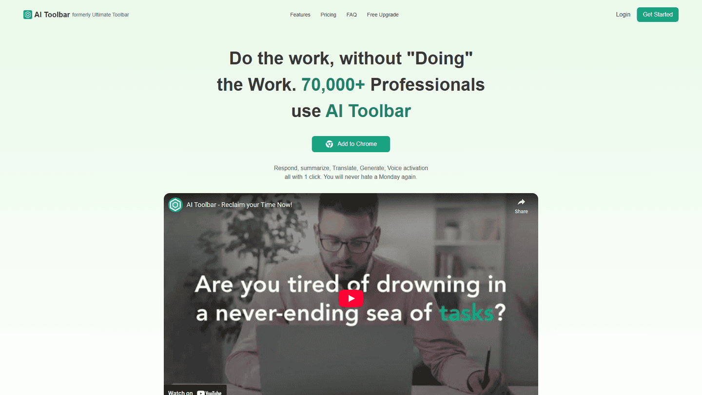 AI Toolbar is a virtual assistant that integrates directly into your web browser. It's designed to improve productivity and simplify tasks by providing a range of AI-based features, from drafting emails to translating text.
