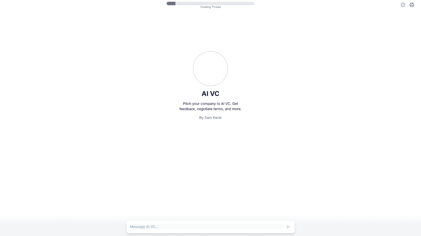 AI VC is an AI tool primarily designed to assist business professionals in pitching their companies to Venture Capitalists (VC). The system offers an avenue to present company details, strategies and ambitions, while simultaneously providing access to valuable, analytical feedback. Users can utilize AI VC to begin negotiations and discuss investment terms in what is intended to reflect a realistic capital investment scenario. The AI tool seeks to streamline interactions between users and potential investors, creating an environment conducive for productive dialogue and consensus building. Created by Sam Kwok, the AI VC tool is rooted in facilitating more efficient and insightful exchanges between business owners and potential investors. The absence of specifying financial involvement and minimization of geographical barriers might be perceived as a commitment to broadening access to investment opportunities. Please note that as with any AI tool, results and feedback should serve as guidance and not total replacement for advice from mentors, investment consultants, or legal advisers.