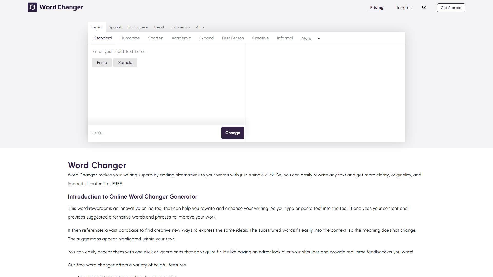 2. What are the key features of AI Word Changer?