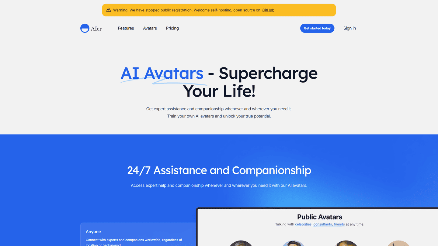 AIer.app is a service that lets users create, train, and engage with AI digital avatars. These AI avatars provide assistance, companionship and expert advice, embodying a user-friendly and human-like interaction pattern. AIer.app makes conversing with various personalities accessible anytime and anywhere.