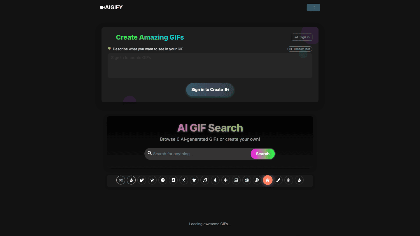 AIGIFY is a digital GIF generator AI tool that allows anyone to easily create and customize unique GIFs for websites, social media posts, blogs, and more. Users can select from over 100 different styles and characters, such as cats, dogs, superheroes, and historical figures, among others, to personalize their GIF. The tool also offers a wide variety of moods, including positive, negative, calm, energetic, and vibrant, to match the tone of the GIF with the intended message. Once generated, users receive their GIF via email, typically within five minutes.It is important to note that AIGIFY is a one-time payment service, with no subscription fees. Users can generate one GIF for $1 or pay a monthly fee of $20 to generate up to 100 GIFs per month. Additionally, the tool's creators emphasize that AI-generated artifacts and defects may occur, but unethical prompts are not allowed. Users own the right to sell and commercialize their generated GIFs.AIGIFY was built by AI experts and is registered as a trademark and subject to worldwide copyright. The tool's developers also offer other AI-powered projects such as Neural Canvas for generating AI comics and RocketAI for automating graphic design tasks.