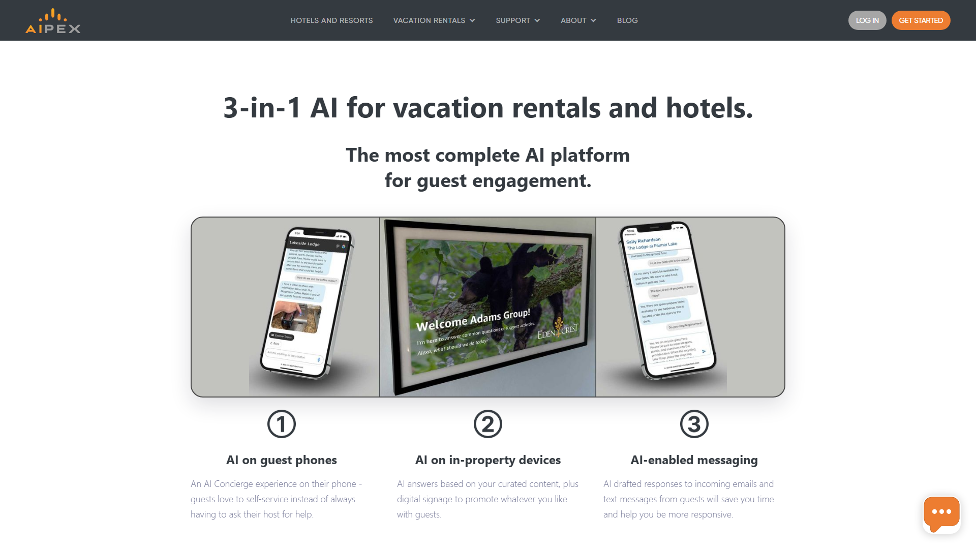 AIPEX provides the original and market-leading AI concierge solution. Our platform delivers innovative ways for hotels and vacation rentals to connect with their guests, save staff time and grow bookings. It is the only guest engagement solution available through both guest's mobile phones as well as in-property Alexa devices.