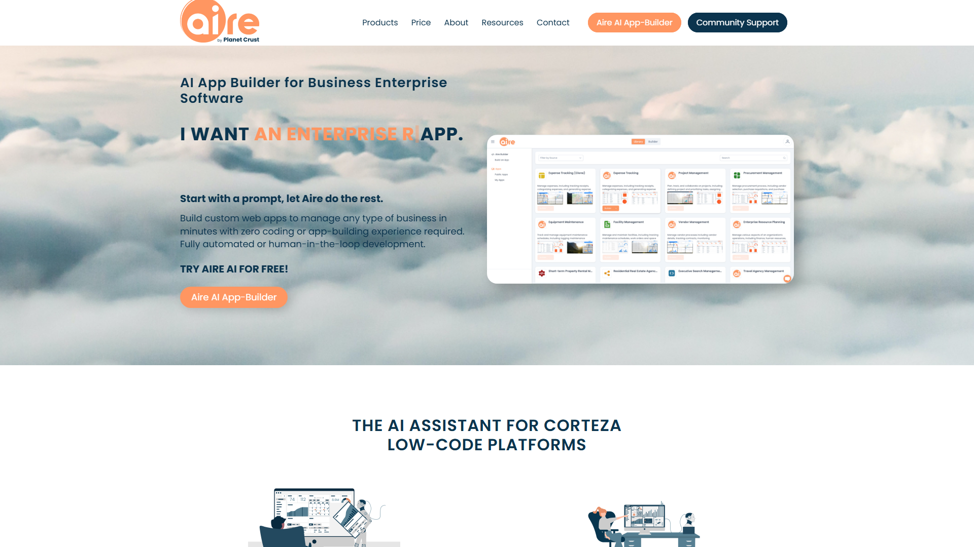 Aire is designed for use by a full spectrum of users, from non-IT citizen developers and no-coders, to businesses and technical experts. It bridges the gap between tech and non-tech users by simplifying the application building process with AI and no-code tools.