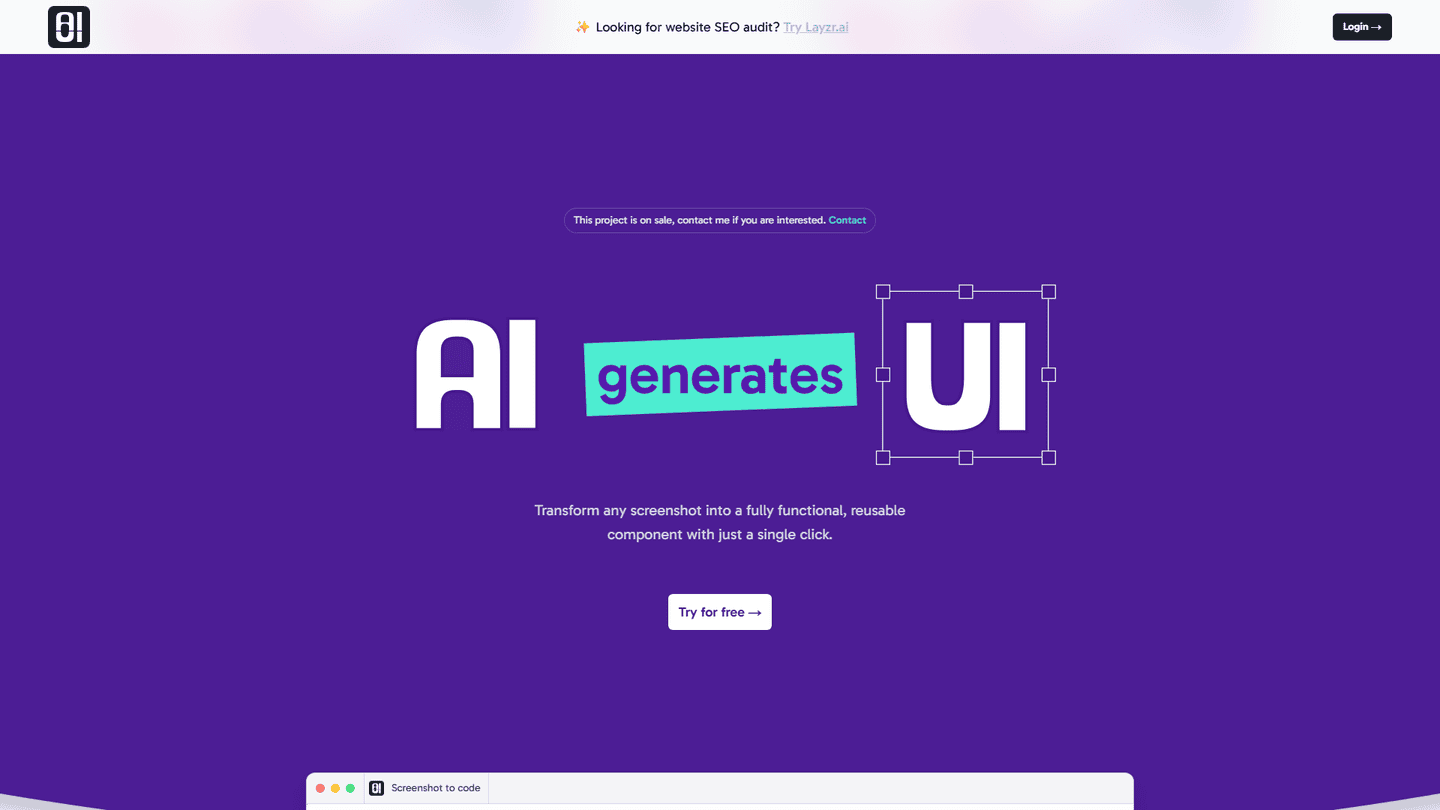AIUI.me is an AI-powered tool designed to convert screenshots to fully functional code. The tool is designed to streamline the workflow for UI/UX designers, developers, freelancers, agencies, startups, and small teams. The process is simple: Users take a screenshot of a UI element they want to create, upload the image and the tool generates reusable React.js and TailwindCSS components ready for the project in seconds. As well as instantly converting screenshots to components, the tool has customization options. Users can ask the AI to change aspects such as color or size of the component, and it will make the adjustments. Once the code is ready, it can either be copied or downloaded for use in projects. Despite potentially struggling with complex designs, when provided with more context, the tool is said to 'work like magic'. While AIUI.me primarily supports the creation of React.js and TailwindCSS components, its primary dedication is to save time, maximize efficiency, and assist users in swiftly launching their projects.