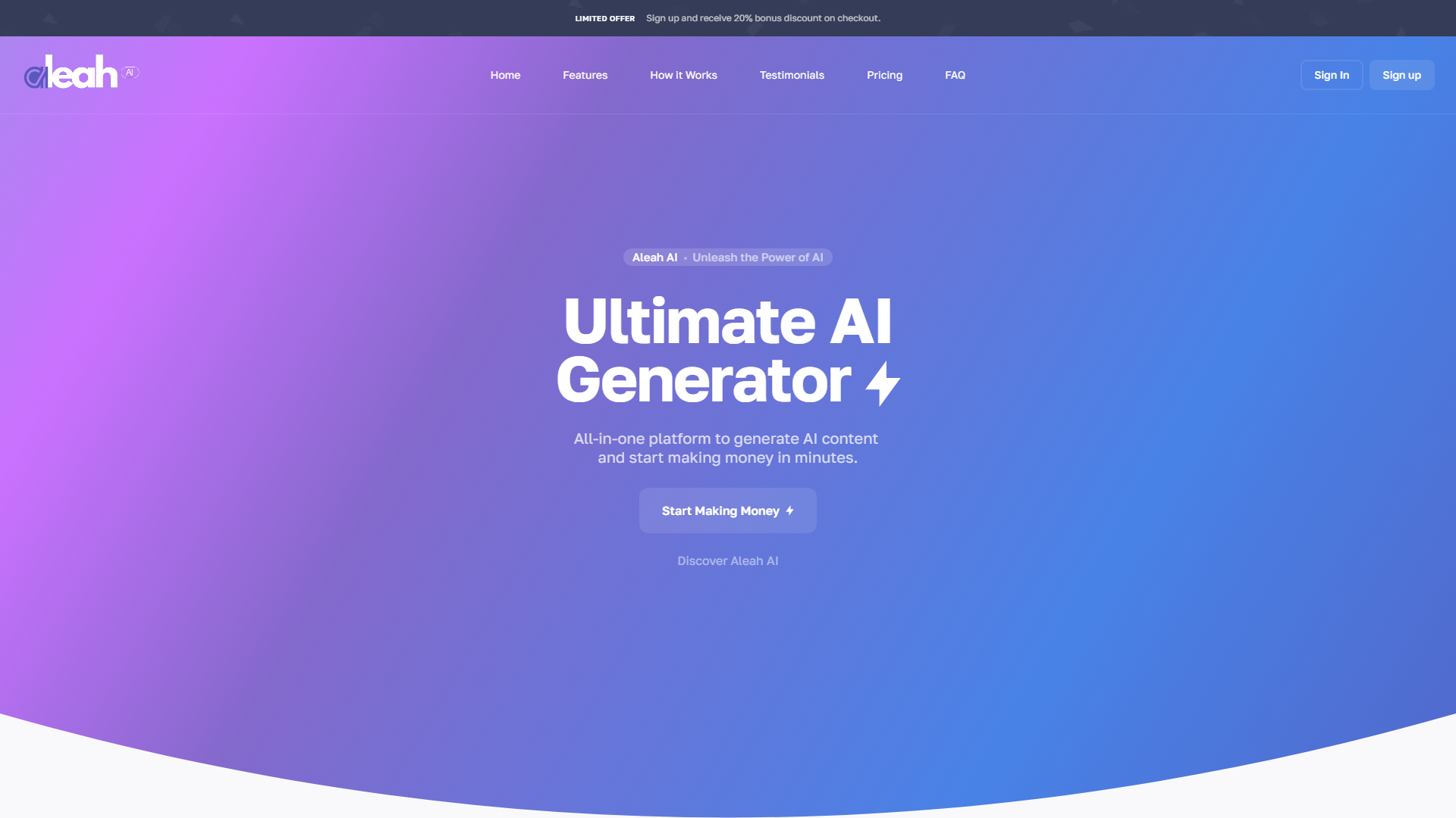 Aleah AI is the ultimate AI-powered content generating tool to help you quickly create high-quality content that requires minimal effort, time, and cost.