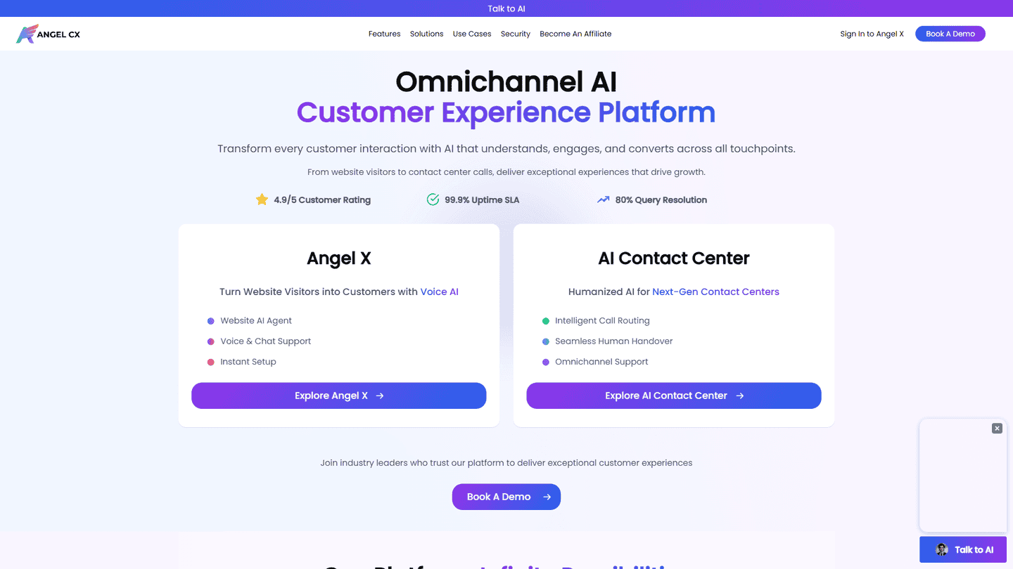 Angel CX offers AI-powered automation for improved efficiency and enhanced customer satisfaction. It provides real-time insights into performance and boasts seamless integration with existing CRM systems.