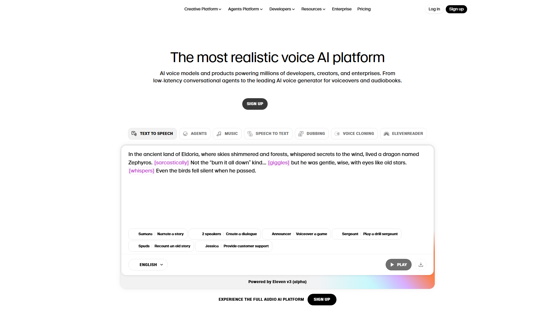 ElevenLabs is an AI-powered voice platform that generates incredibly realistic and natural-sounding synthetic speech. It allows users to create custom voices, select from a library of existing voices, and fine-tune parameters like intonation and emotion for various applications, from audiobooks to video games.