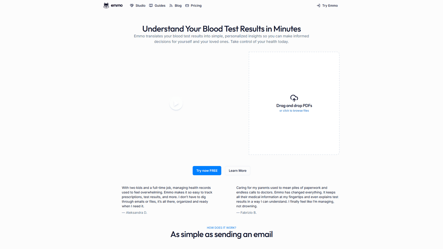 Emmo is an AI-powered blood test interpretation tool. Its main purpose is to assist healthcare professionals in making faster and more accurate diagnoses by analyzing blood test results and providing insights and recommendations.