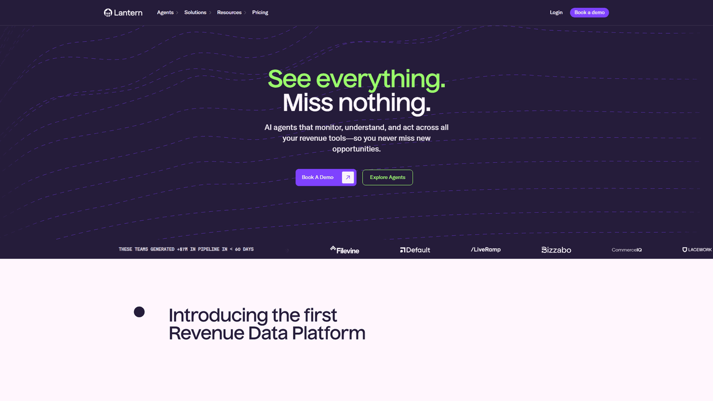 Lantern is an AI-powered sales engagement platform designed to streamline and optimize the sales process. Its main purpose is to help sales teams personalize outreach, improve response rates, and close more deals by automating tasks and providing valuable insights.