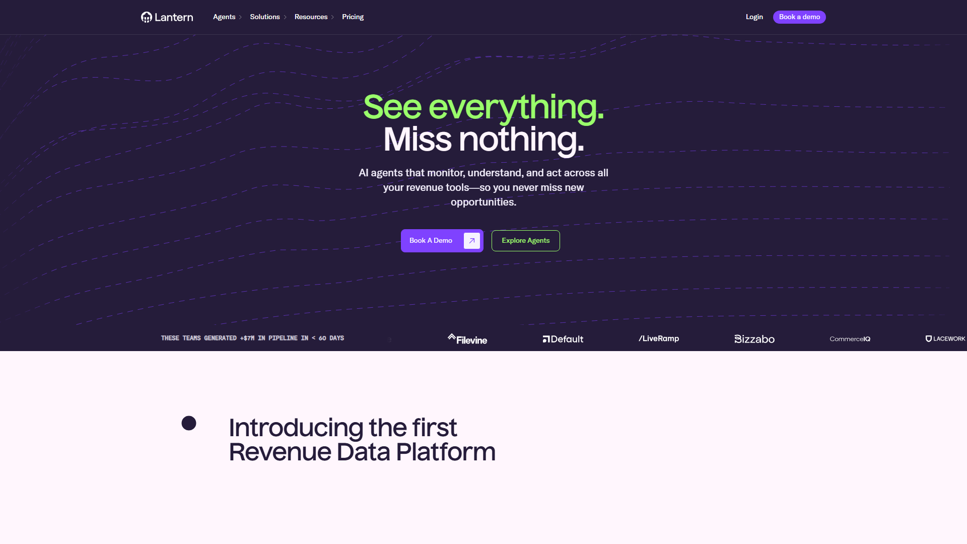 Overall, Lantern aims to optimize sales strategies and improve revenue generation through its advanced AI-driven solutions.