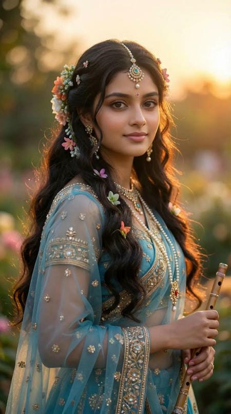 Hyperrealistic close-up portrait (shoulders only) of an adult woman matching the original face. 45° face tilt, soft dreamy expression. Curly-to-straight black hair, shiny and voluminous, light strands over the face. Long lashes,pink-nude lips. Sleeveless deep-neck blouse visible at shoulders. Gold “om” pendant necklace, rose-gold smartwatch partly visible. 9:16 vertical, no feature changes. don't change my face please।