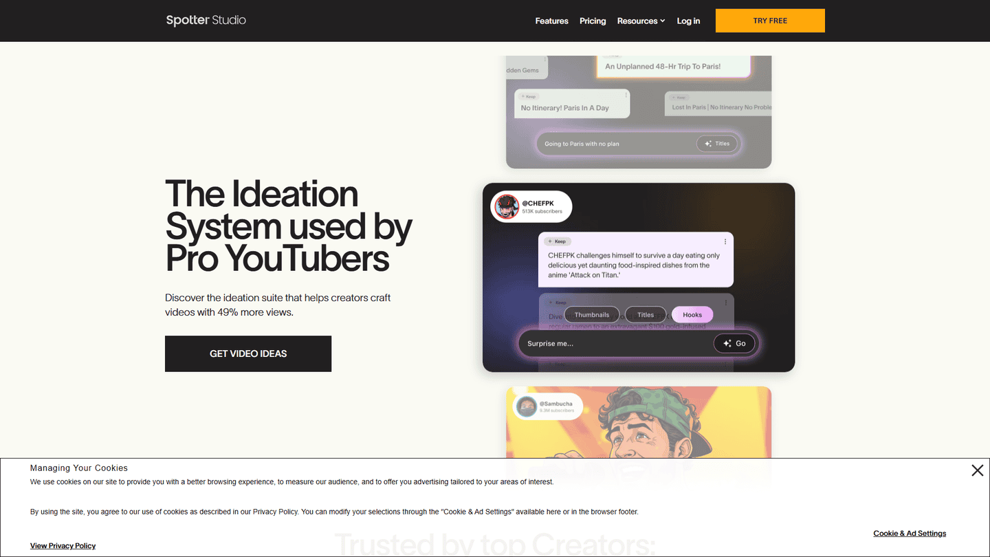Spotter Studio targets YouTubers, TikTokers, social media managers, and anyone involved in video content creation who wants to improve their ideation process and maintain a consistent content calendar.