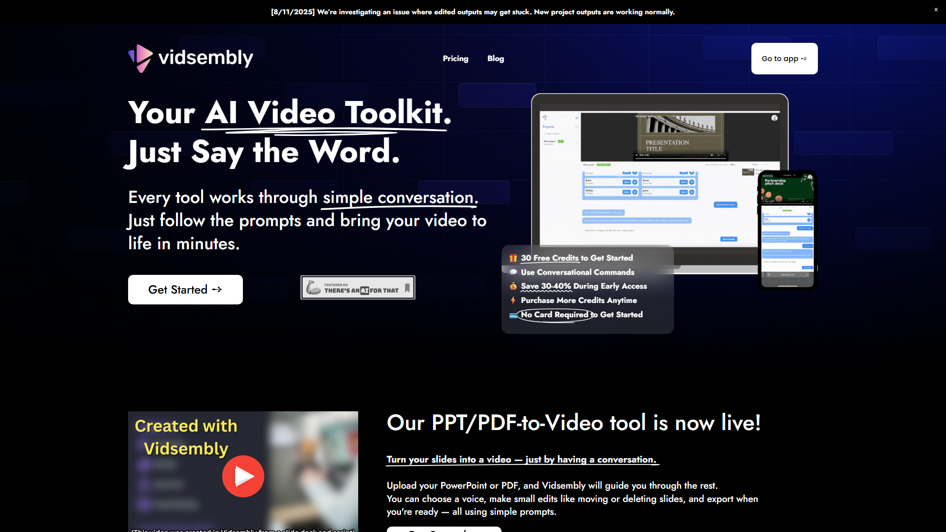Vidsembly is an AI-powered tool that automatically transforms presentations (PowerPoint, Google Slides, Keynote) into engaging videos. It handles transitions, animations, and background music, saving users significant time and effort in video creation.