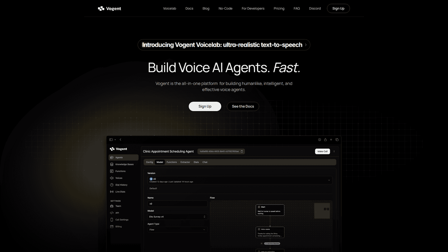 Vogent is a powerful platform enabling the creation and deployment of sophisticated voice agents. It goes beyond simple chatbot functionality, offering a robust suite of tools for designing, training, and managing conversational AI experiences. Users can leverage Vogent's intuitive interface to build voice agents tailored to their specific needs, integrating them seamlessly into existing systems and workflows. The platform supports various functionalities, including natural language understanding (NLU), speech-to-text (STT), and text-to-speech (TTS), allowing for fluid and natural interactions. Key features include customizable dialogue flows, integration with popular CRM and communication platforms, and advanced analytics for performance monitoring and optimization. Vogent's target audience includes businesses of all sizes seeking to improve customer service, automate tasks, and enhance operational efficiency through voice-enabled solutions. Its unique selling points include its ease of use, comprehensive feature set, and scalability, allowing businesses to deploy voice agents across multiple channels and platforms. The platform's workflow typically involves designing the conversational flow, training the agent using Vogent's provided tools and datasets, testing and refining the agent's performance, and finally deploying it to the desired platform. This allows for a streamlined process from concept to deployment, making advanced voice AI accessible to a wider range of users.