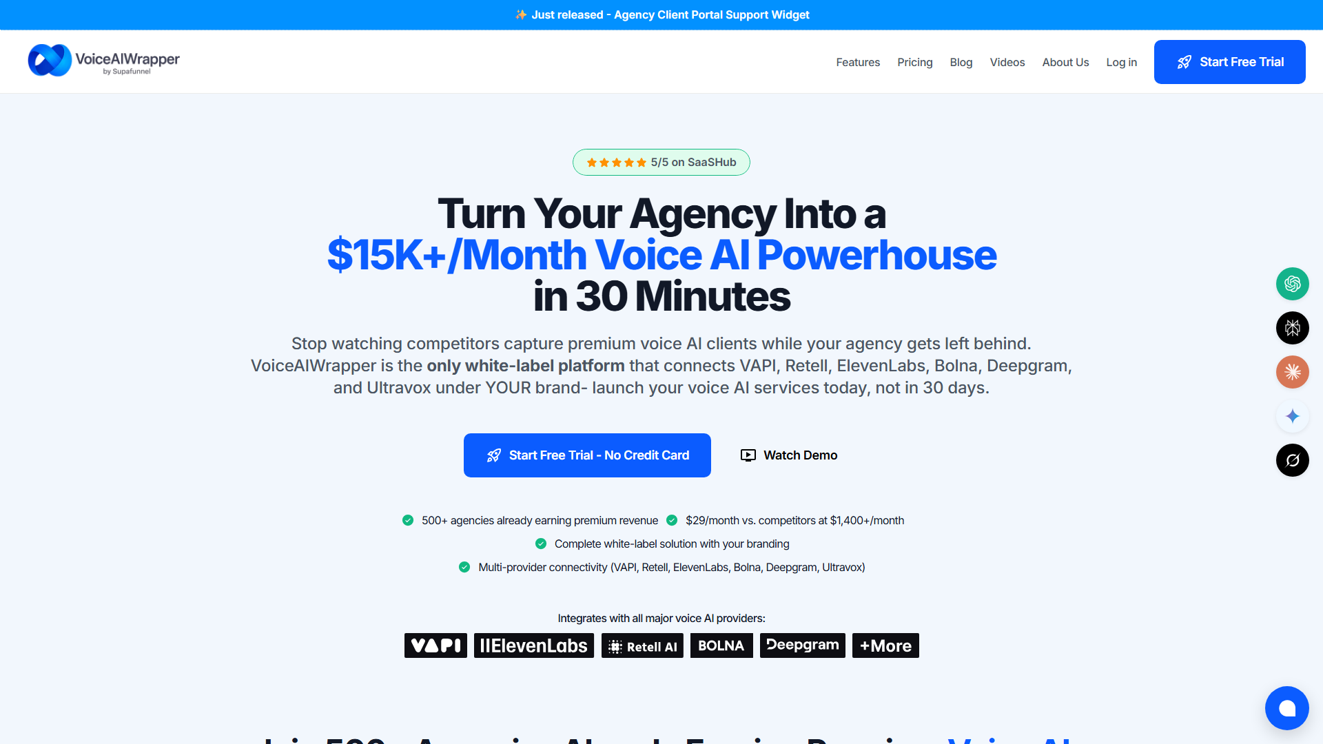 At VoiceAIWrapper, we're democratizing access to cutting-edge voice technology, making it easier than ever to create intelligent, conversational AI agents. Forget complex coding and endless integrations. Our platform provides a streamlined, intuitive environment to build, deploy, and manage your voice AI applications.