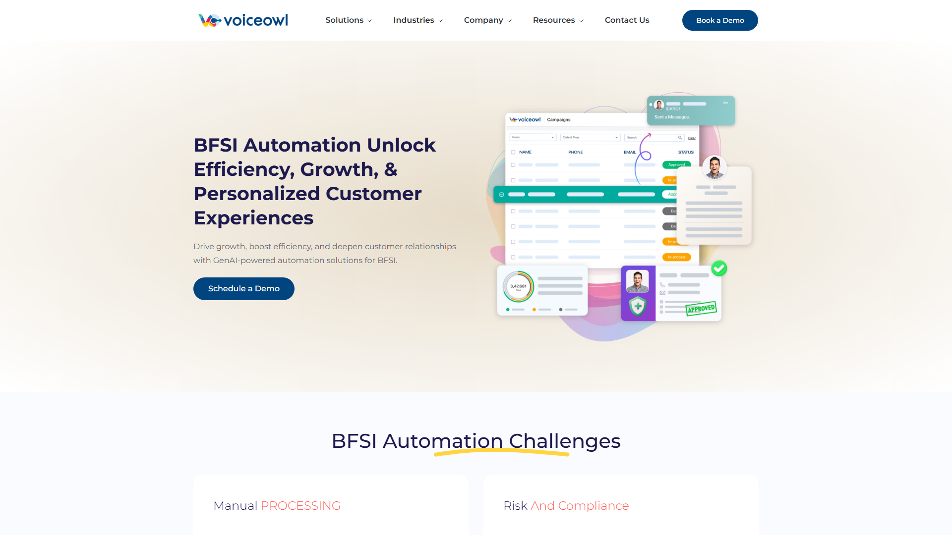VoiceOwl automates business processes using AI-powered voice technology, enabling efficient handling of customer interactions and internal workflows for BFSI (Banking, Financial Services, and Insurance) organizations.