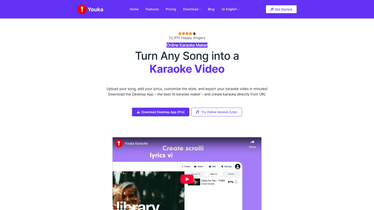 Youka is an innovative AI-powered karaoke application designed to elevate the singing experience for users of all skill levels. Its core functionality revolves around real-time pitch correction and vocal effects, transforming even off-key singing into a more polished performance. The platform boasts a comprehensive library of songs, constantly expanding to include a diverse range of genres and artists, catering to varied musical tastes. Beyond basic karaoke, Youka offers features like recording and sharing your performances, allowing users to document their progress and share their talents with friends and family. The AI's sophisticated algorithms analyze your voice in real-time, providing feedback and adjustments to improve your pitch accuracy and overall vocal quality. This makes it an ideal tool for both casual karaoke enthusiasts looking for a fun and engaging experience and aspiring singers seeking to refine their technique. Youka's intuitive interface makes it easy to navigate and use, regardless of technical expertise. The ability to record and share performances fosters a sense of community and allows users to connect with other karaoke lovers. While the exact specifics of the AI algorithms remain undisclosed, the results speak for themselves – a smoother, more confident singing experience. Youka's target audience is broad, encompassing anyone who enjoys singing, from casual karaoke fans to serious vocalists looking for practice tools. Its unique selling proposition lies in the combination of a vast song library, powerful AI-driven vocal enhancement, and user-friendly interface, creating a compelling and accessible karaoke experience.