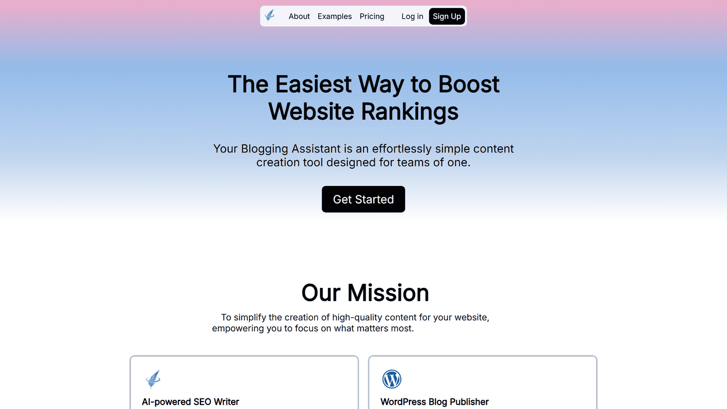 Your Blogging Assistant is an AI-powered content creation tool designed to streamline and enhance the blogging process for individuals and teams. It aims to help bloggers create high-quality content efficiently by augmenting, not replacing, human creativity.