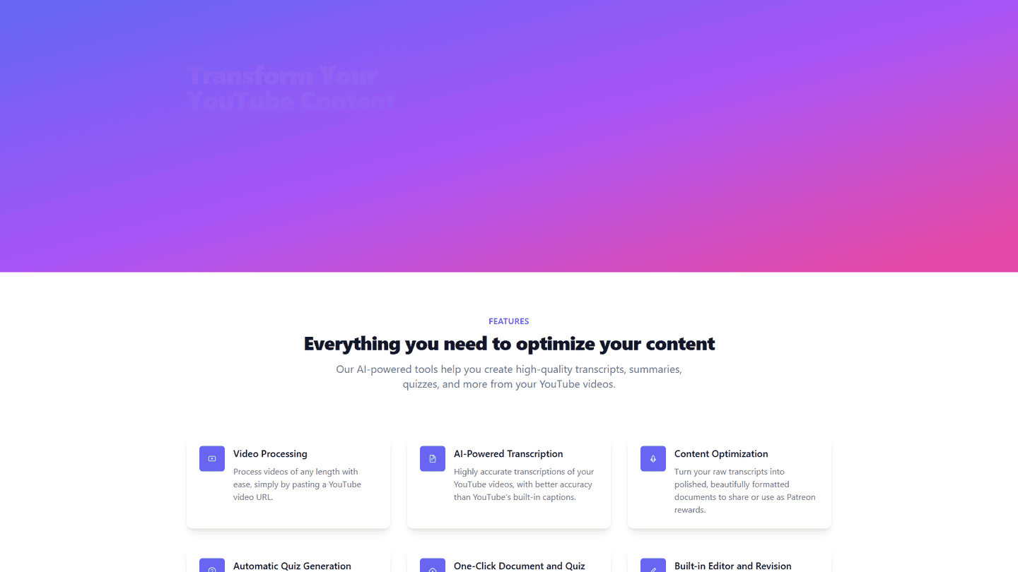 The tool offers automated transcription, saving you significant time. It also generates timestamps, improves readability, optimizes transcripts for SEO, and ultimately enhances the viewer experience.