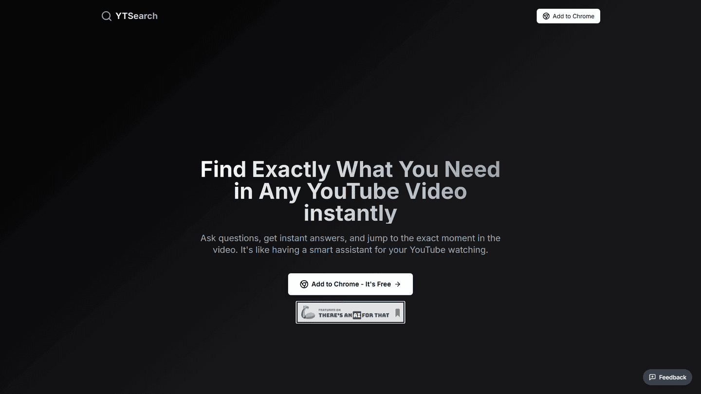YTSearch is free to use, fast and efficient, and has an easy-to-use interface. Its speed and accuracy in locating answers within videos save users significant time and effort.