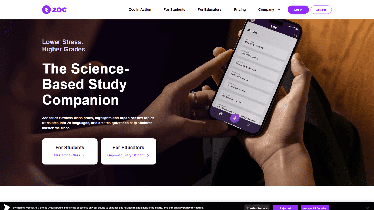 Zoc.ai is designed for students of all ages and academic levels, from high school to university and beyond, who want to improve their study efficiency and academic performance.